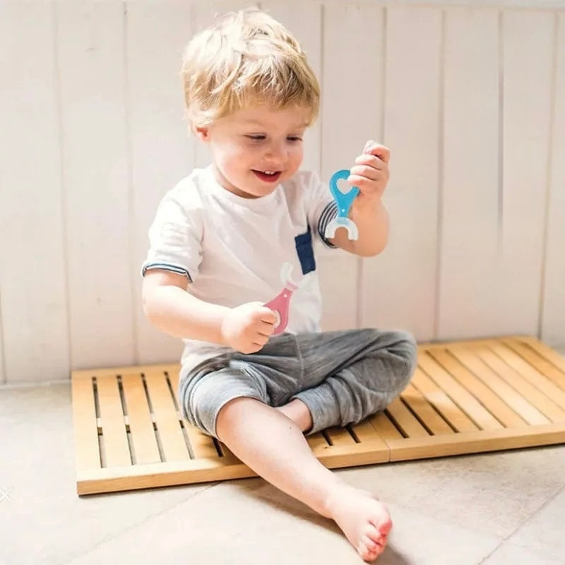 מברשת שיניים סיליקון לילדים בצורת U – 360° לניקוי מושלם 🦷✨