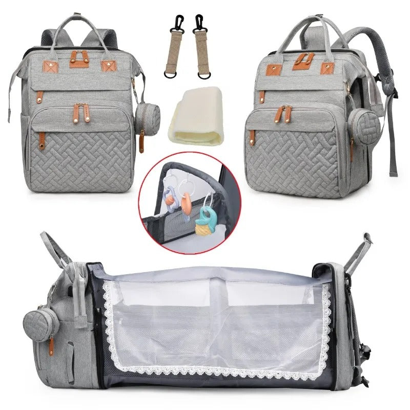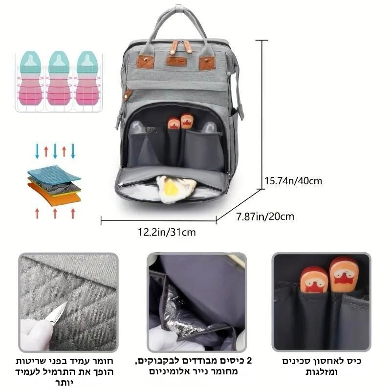 תיק אמא רב-תכליתי – חיתולים, מיטה מתקפלת ובידוד תרמי בתיק אחד