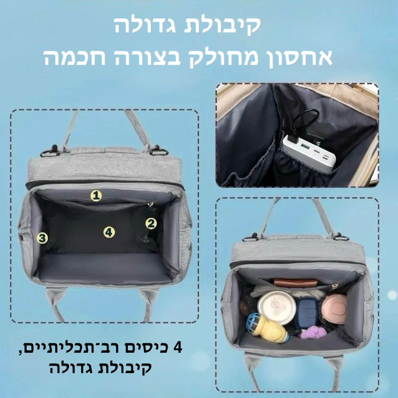 נפח גדול לארגון קל - מספק מקום לכל מה שתצטרכי – חיתולים, בגדים, בקבוקים וצעצועים – מבלי להתפשר על סדר וארגון.